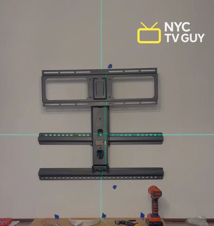 We'll look at the wall first and confirm the wall type and stud situation before doing anything else. In NYC, this step is where DIY installs most often go wrong — a stud finder that gives false positives on plaster, or metal studs that look the same as wood studs to an electronic sensor. We use multiple methods (electronic finder, knock test, small pilot holes when needed) to confirm.